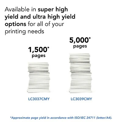 Brother Genuine LC3039C Single Pack Ultra High-yield Cyan INKvestment Tank Cartridges deliver consistent, professional print quality and ultra convenience with an up to 5,000-page yield.* Brother Genuine ink is intelligently engineered to work seamlessly with your Brother INKvestment Tank inkjet printer to consistently produce rich, vivid color prints that withstand the test of time. Brother Genuine LC3039C is for use with Brother INKvestment Tank affordable inkjet all-in-one printers MFC-J5845DW, MFC-J5845DW XL, MFC-J5945DW, MFC-J6545DW, MFC-J6545DW XL and MFC-J6945DW with Brother tank technology. Brother offers an environmentally responsible way for customers to dispose of Brother Genuine cartridges at end of life. Visit www.brother-usa.com/environment for more information.