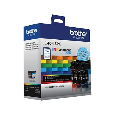 Trust Brother Genuine ink for superior inkjet print quality, page yields and performance you can consistently rely on. Brother Genuine LC404 3PK 3-Pack Color INKvestment Tank Ink Cartridges deliver consistent, professional print quality and ultra convenience you can count on for up to 750 pages* per cartridge. Brother Genuine INKvestment Tank ink cartridges offer the ultimate in convenience. The easy-to-use, front-loading plug-in INKvestment Tank ink cartridges hold more ink than traditional cartridges to continually supply ink to the internal tank, so you get more pages without needing to refill. When refilling is needed, simply take out the empty cartridge, plug-in a replacement and get back to printing with no waiting and no mess.