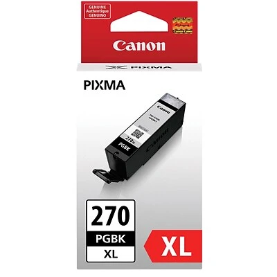 Deliver legible text and sharp graphics with this black ink tank. Effortless to install in select PIXMA printers, this individual ink tank features a smart LED to monitor ink levels for replacement. This Canon PGI-270 XL pigment black ink tank is a genuine Canon part, offering quick, easy replacement so you can get back to work.