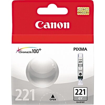 Get vibrant prints that last a long time by using this gray ink tank. The ink dries quickly to prevent it from smudging, smearing and bleeding through papers for clean results every time. This Canon CLI-221 gray ink tank is easy to install into select Canon photo printers, all-in-one machines and inkjet printers, and the gray ink ensures that text and images stand out sharply.