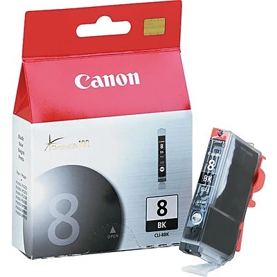 Print smoothly with this black ink tank. The black color contrasts sharply with white paper to help whatever you print stand out, and with an easy-to-install design, inserting this tank into select Canon photo printers, inkjet printers and all-in-one machines is easy. Filled with ink that dries quickly, this Canon CLI-8BK black ink tank produces prints that are resistant to smearing and bleeding, so text is sharp and easy to read.