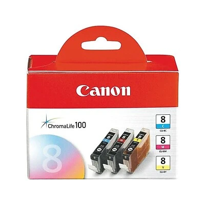 Give reports, presentations and other documents a sharp appearance with these color ink cartridges. The cyan, magenta and yellow colors create a range of hues for lifelike image printing, and the cartridges are simple to install into select Canon machines. With specially formulated pigment ink, these Canon ink cartridges produce prints that are crisp, clear and easy to read, and they come in a pack of three, so you have all colors covered.