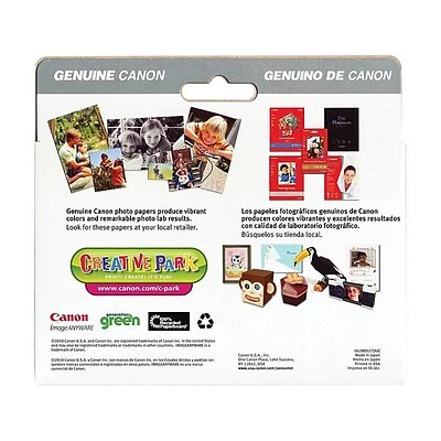 Create vibrant, lasting photos with this ink cartridge combo pack. With cyan, magenta, black, and yellow colors, this combo pack has everything you need to produce high-quality images, and the included photo paper has a glossy finish, giving documents a sleek look. This Canon ink cartridge combo pack features Full Photolithographic Inkjet Nozzle Engineering technology, so you can easily get detailed and sharp prints.