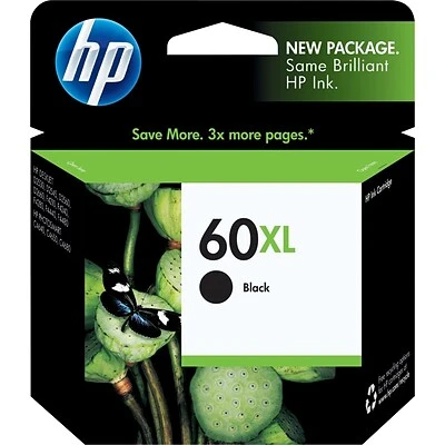 Original HP 60XL black ink cartridges (CC641WN) provide up to three times as many pages per cartridge than the standard size, so you can count on extra pages that maintain text quality and resist fading for years. Original HP 60XL ink cartridges work with your printer to balance your ink so prints remain consistent.