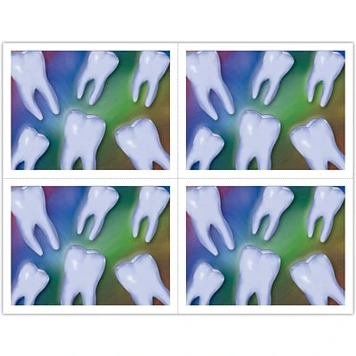 Attention-getting postcard captures your patients attention. The back of the postcard is blank so you can add a personalized message, using your own Laser Printer. Uncoated stock, perforated sheets. Four cards to an 8-1/2″ x 11″ sheet. 100 cards. Detached size: 4-1/4″ x 5-1/2″.
