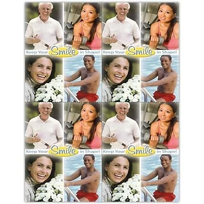 Attention-getting postcard captures your patients attention. The back of the postcard is blank so you can add a personalized message, using your own Laser Printer. Uncoated stock, perforated sheets. Four cards to an 8-1/2″ x 11″ sheet. 100 cards. Detached size: 4-1/4″ x 5-1/2″.