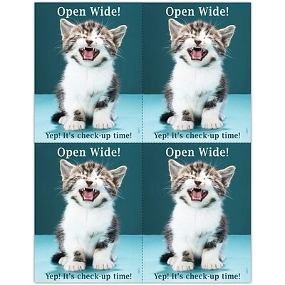 Attention-getting postcard captures your patients attention. The back of the postcard is blank so you can add a personalized message, using your own Laser Printer. Uncoated stock, perforated sheets. Four cards to an 8-1/2″ x 11″ sheet. 100 cards. Detached size: 4-1/4″ x 5-1/2″.