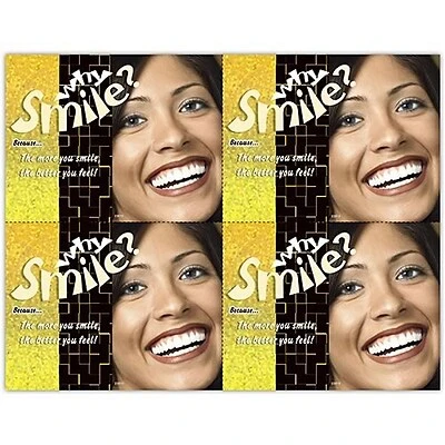 Attention-getting postcard captures your patients attention. The back of the postcard is blank so you can add a personalized message, using your own Laser Printer. Uncoated stock, perforated sheets. Four cards to an 8-1/2″ x 11″ sheet. 100 cards. Detached size: 4-1/4″ x 5-1/2″.