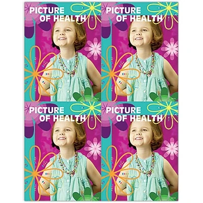 Attention-getting postcard captures your patients attention. The back of the postcard is blank so you can add a personalized message, using your own Laser Printer. Uncoated stock, perforated sheets. Four cards to an 8-1/2″ x 11″ sheet. 100 cards. Detached size: 4-1/4″ x 5-1/2″.