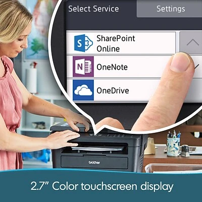 The reliable Brother HL-L2395DW printer delivers efficient performance for the busy home or small office. Featuring class leading print speeds of up to 36 pages per minute and a flatbed scan glass for convenient copying and scanning. Wireless mobile device printing and “touch to connect” printing and scanning with NFC delivers added convenience. You can print-from and scan-to popular Cloud services directly from the 2.7” color Touchscreen and help save time by creating custom shortcuts for your most used features. The 250-sheet paper capacity helps improve efficiency with less refills and handles letter or legal sized paper. Comes with a 1-year limited warranty and free online, call or live chat support for the life of your product.