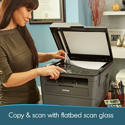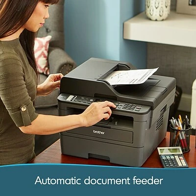 The Brother MFC-L2710DW All-in-One is a great choice for home or small offices that need full functionality in a compact footprint. The up to 50-sheet automatic document feeder enables multi-page copying and scanning while its class leading print speeds of up to 32 pages per minute provide increased efficiency. Enables wireless printing from mobile devices. Automatic duplex (2-sided) printing helps save paper. The 250-sheet paper capacity handles letter and legal sized paper while reducing the need for refills. Choose built-in wireless and Ethernet network interfaces for sharing with multiple users on your network or connect locally to a single computer via USB interface. Comes with a 1-year limited warranty and free online, call or live chat support for the life of your product.