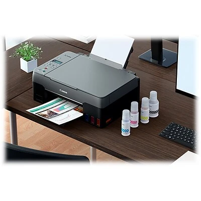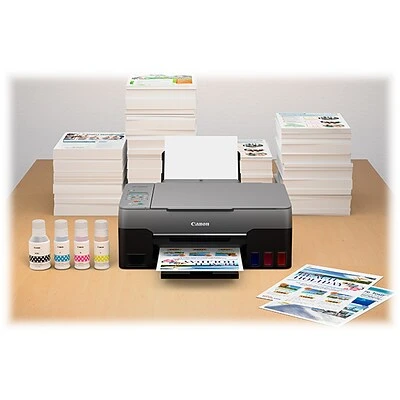 The Canon PIXMA G3260 wireless MegaTank all-in-one printer is designed for productivity, delivering high-volume, low-cost printing. Print, copy, and scan with ease and enjoy great versatility. Print documents, borderless photos, and more on a variety of media types and sizes with hybrid inks for crisp blacks and vivid colors. Plus, you can print on the go wirelessly from your favorite mobile devices. Print more for less with the Canon PIXMA G3260 wireless MegaTank all-in-one printer.
