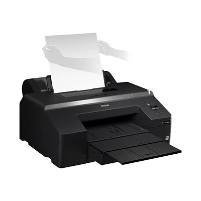 Designed to set the benchmark for professional imaging excellence, the 17″ Epson SureColor P5000 Series offers a refined design for enhanced performance and reliability. Ideal for professional photographic, fine art, graphic design and proofing applications, it features the advanced PrecisionCore TFP printhead and Epson Precision Dot screening technologies, developed to work exclusively with 200 mL UltraChrome HDX pigment ink cartridges. This next-generation 10-color extended-gamut ink set includes higher-density Blacks and delivers up to twice the print permanence than the previous generation. Plus, get versatile media handling with automatic switching between the high-capacity front paper cassette and the roll media feeder.