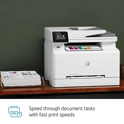 Freedom to work anywhereStay connected to your business with the HP Color LaserJet Pro M283fdw Wireless All-in-One Laser Printer. Easily print, scan, and receive notifications from your mobile device with HP Smart, HP’s best-in-class mobile print app. Tap on the Smart Tasks tile in the HP Smart app to automate repetitive tasks, manage expenses, backup documents, organize documents 50% faster and more. Accomplish more with your timeThe intuitive 2.7″ color touchscreen allows you to easily print, copy, scan, and fax directly at the printer. Enjoy fast printing in a single pass with print speeds up to 22 ppm, automatic two-sided printing, and a 50-page automatic document feeder. Plus, save energy and money with HP Auto-On/Auto-Off Technology.