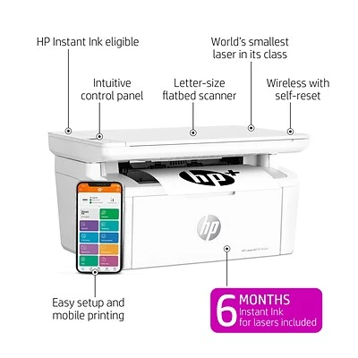 The world’s smallest multifunction laser printer in its class, the HP LaserJet MFP M140we is perfect for printing black & white forms and documents, plus scan/copy. Includes the HP+ Smart Printing System that keeps itself up to date, secure, and ready to print from virtually anywhere at any time.